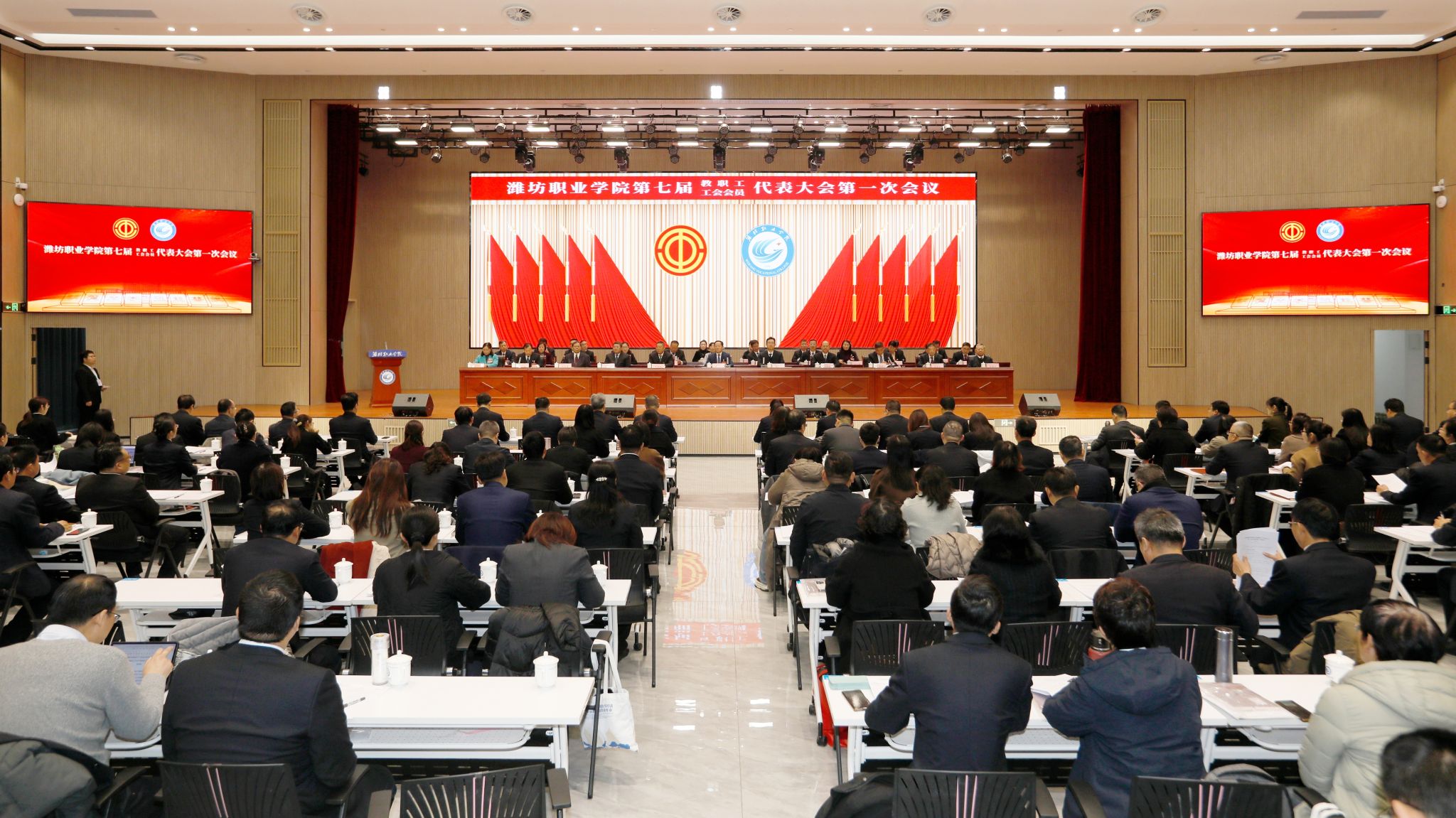 12月11日,潍坊职业学院第七届教职工代表大会第一次会议、第七届工会会员代表大会第一次会议在综合楼报告厅举行,山东省教育工会发来贺信。潍坊市总工会党组成员、副主席徐连奎出席开幕式并讲话,学院党委书记王浩、院长韩瑞东等党政领导班子成员、大会主席团成员和特邀代表在主席台就座。学院正式代表、特邀代表、列席代表200余人参会。 大会在庄严的国歌声中拉开帷幕。 徐连奎代表潍坊市总工会向大会召开表示祝贺,高度肯定学院作为全市职业教育支柱所取得的突出成就,以及在服务地方发展、引育人才、专业建设、技能人才培养等方面的显著成效。他对学院工会在服务教工、培育工匠、促进和谐等方面发挥的积极作用予以充分认可。他对学院工会工作提出三点希望:一要凝聚思想共识,引导教职工力量汇聚到落实党委决策和服务大局上来;二要激发干事热情,围绕“建高升本”目标与地方产业需求,建强平台、提升技能,激励教工建功立业;三要履行服务职责,完善民主管理,用心做好关爱服务,建设可信赖的“职工之家”。 韩瑞东向大会作题为《创新实干 锐意进取 为实现“建高升本”目标而努力奋斗》的工作报告。报告全面回顾了过去五年学院在党的建设、“双高计划”建设、教育教学改革、师资队伍建设、人才培养、产教融合、国际交流、办学条件等方面取得的丰硕成果,客观分析了当前面临的机遇与挑战。报告明确了未来五年工作的指导思想和战略目标,强调要锚定“建高升本”核心任务,并从坚持党的全面领导、构建全环境育人体系、深化关键要素改革、打造高技能人才培养高地、强化产教融合与科研服务、深化校地融合、扩大开放办学、完善现代治理体系、繁荣校园文化等九个方面系统部署了重点任务。 王浩在闭幕式上讲话。他代表学院党委对大会的成功召开和新当选的委员表示祝贺,向全体代表和工作人员表示感谢。他指出,本次大会是在聚力攻坚“建高升本”关键时期召开的一次重要会议。他就贯彻落实大会精神提出三点要求:一要深入学习宣传,统一思想行动;二要压实责任,聚焦“建高升本”、建校70周年等九项重点任务;三要强化工会职能,凝聚发展合力。他强调,全院要增强紧迫感,弘扬“崇实尚行 敢于争先”的潍职精神,奋力谱写学院高质量发展新篇章。 会议期间,各代表团分组审议了《学院工作报告》《学院财务工作报告》《第六届教代会提案工作情况报告》《学院工会、教代会工作报告》《第六届工会经费审查委员会工作报告》《专业技术职务评聘实施办法》修订说明等一系列文件。代表们围绕学院发展大局和教职工关切问题积极建言献策,展现了高度的责任感和主人翁精神。 大会选举产生了潍坊职业学院第七届教职工代表大会执行委员会、第七届工会委员会和第七届工会经费审查委员会,表决通过了关于《学院工作报告》《学院工会、教代会工作报告》等各项决议草案和第七届提案工作委员会委员建议名单,圆满完成了各项议程。 大会在雄壮的《国际歌》声中圆满闭幕。